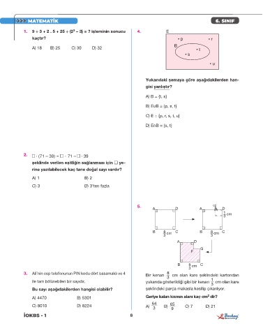 3. Ali’nin cep telefonunun PIN kodu dört basamaklı ve 4 Bir kenarı 8 cm olan kare şeklindeki kartondan