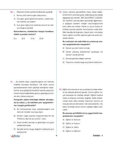 10. I. Ülkemizin bütün şehirleri birbirinden güzeldir. 12. Oyunu yalnızca gerçeklikten kaçış olarak değer-