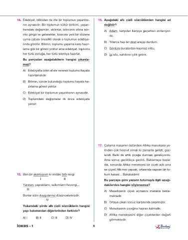 14. Edebiyat, bilimden de öte bir toplumun yaşantısı- 16. Aşağıdaki altı çizili sözcüklerden hangisi ad