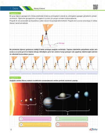 receklerdir. Öğrenciler gezegenlerin yörüngelerini çizmek için pergel ve kalem kullanacaklardır.