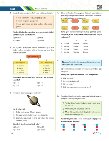 1. Aşağıda bazı gezegenler hakkında bilgiler verilmiştir. 4. Güneş sistemindeki gezegenler Güneş’e yakınlıklarına