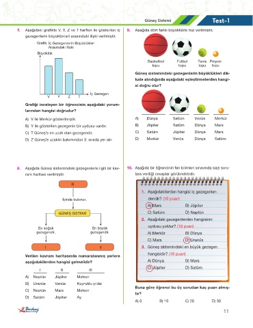 8. Aşağıda Güneş sistemindeki gezegenlerle ilgili bir kav- 10. Aşağıda bir öğrencinin fen bilimleri sınavında bazı soru-