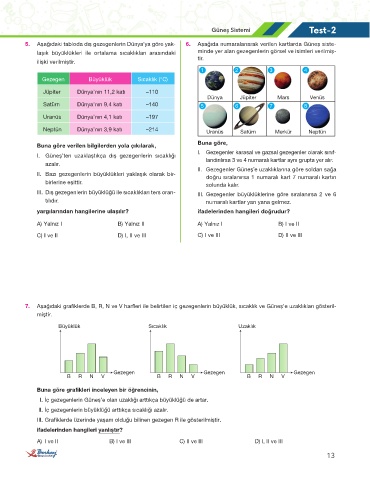II. Bazı gezegenlerin büyüklükleri yaklaşık olarak bir- doğru sıralanırsa 1 numaralı kart 7 numaralı kartın