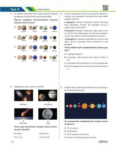 2. Aşağıda bazı gök cisimleri verilmiştir. 4. Aşağıda Güneş sisteminde modellenen bazı gezegen-