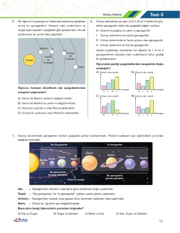 7. Güneş sistemindeki gezegenleri tanıtan aşağıdaki poster hazırlanmıştır. Posteri inceleyen bazı öğrencilerin yorumları