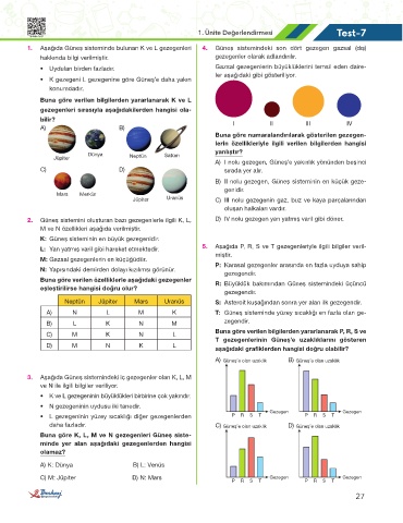 1. Aşağıda Güneş sisteminde bulunan K ve L gezegenleri 4. Güneş sistemindeki son dört gezegen gazsal (dış)
