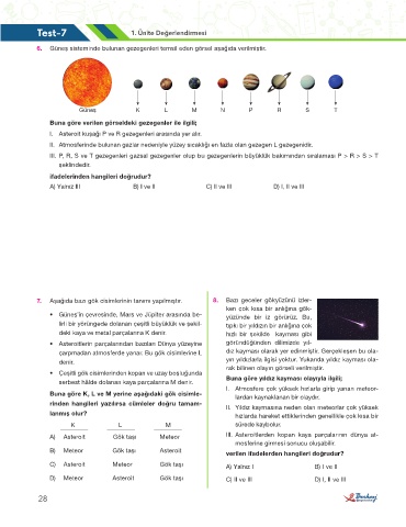 7. Aşağıda bazı gök cisimlerinin tanımı yapılmıştır. 8. Bazı geceler gökyüzünü izler-
