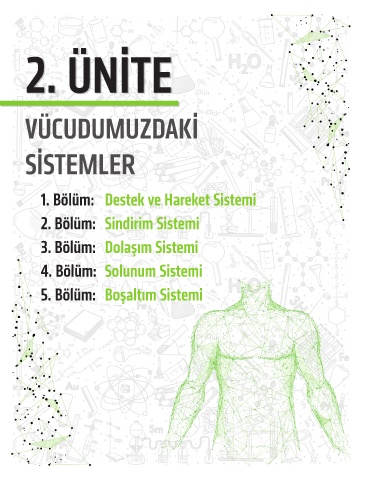 2. ÜNİTE VÜCUDUMUZDAKİ SİSTEMLER 1. Bölüm: Destek ve Hareket Sistemi 2. Bölüm: Sindirim Sistemi 3. Bölüm: Dolaşım Sistemi 4. Bölüm: Solunum Sistemi 5. Bölüm: Boşaltım Sistemi