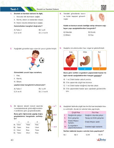 1. Destek ve hareket sistemi ile ilgili, 4. Yandaki görsellerde burun