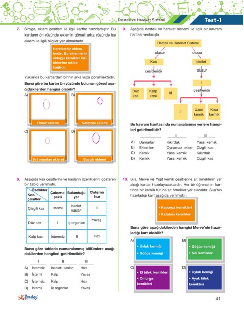 7. Simge, eklem çeşitleri ile ilgili kartlar hazırlamıştır. Bu 9. Aşağıda destek ve hareket sistemi ile ilgili bir kavram