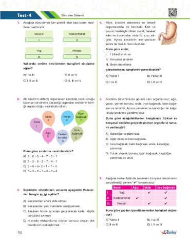 1. Aşağıda vücudumuz için gerekli olan bazı besin mad- 4. Mide, sindirim sisteminin en önemli