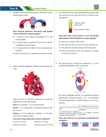 Ahmet: 1 ve 2 ile gösterilen odacıklarda oksijence fakir Kalp ile vücut arasında gerçek- nın tüm vücuda yayılmasını