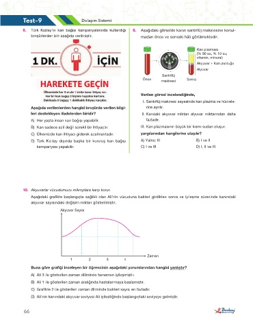 8. Türk Kızılay’ın kan bağışı kampanyalarında kullandığı 9. Aşağıdaki görselde kanın santrifüj makinesine konul-