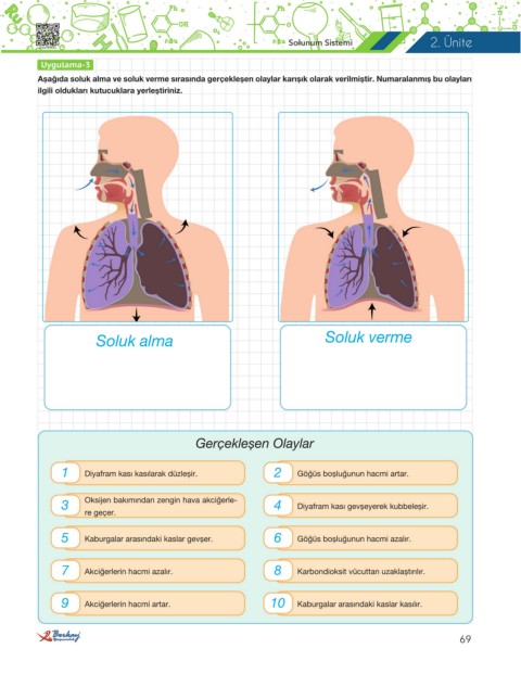 Aşağıda soluk alma ve soluk verme sırasında gerçekleşen olaylar karışık olarak verilmiştir. Numaralanmış bu olayları