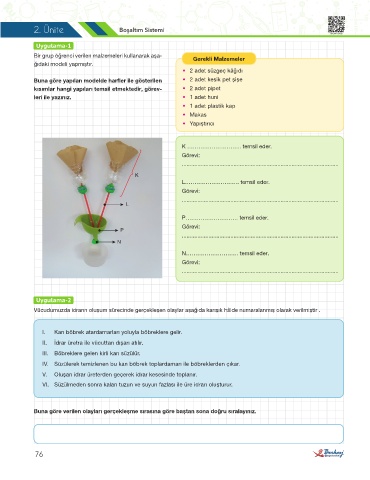 Buna göre yapılan modelde harfler ile gösterilen • 2 adet kesik pet şişe