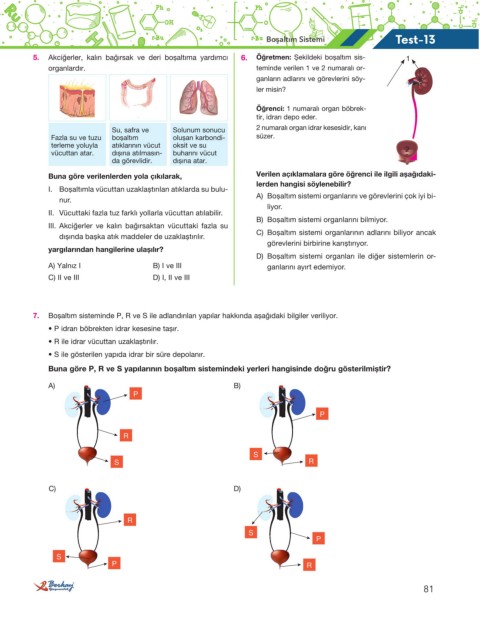 5. Akciğerler, kalın bağırsak ve deri boşaltıma yardımcı 6. Öğretmen: Şekildeki boşaltım sis- 1