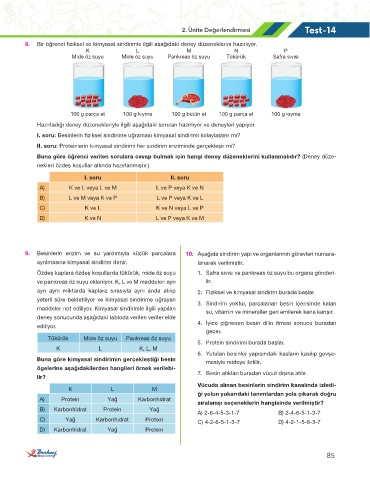 ve pankreas öz suyu ekleniyor. K, L ve M maddeleri ayrı lir.