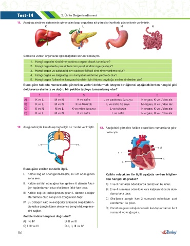 12. Aşağıda küçük kan dolaşımıyla ilgili bir model verilmiştir. 13. Aşağıdaki görselde kalbin odacıkları numaralarla gös-