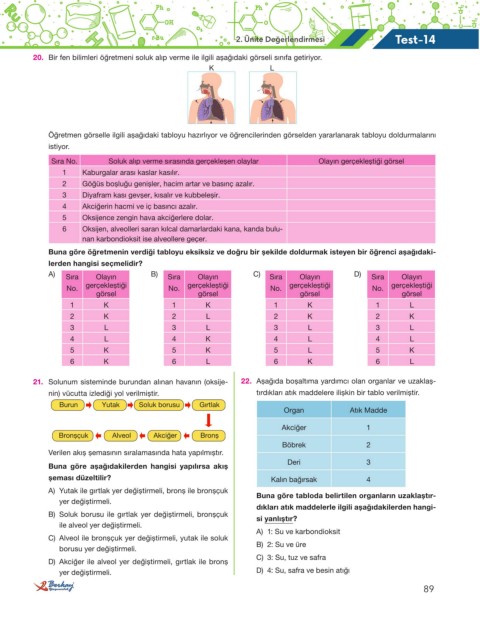 20. Bir fen bilimleri öğretmeni soluk alıp verme ile ilgili aşağıdaki görseli sınıfa getiriyor.
