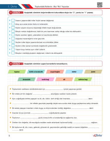 1. Ünite Toplumdaki Rollerim - Bizi “Biz” Yapanlar