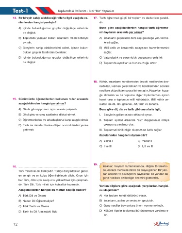 14. Bir bireyin sahip olabileceği rollerle ilgili aşağıda ve- 17. Tarih öğrenmek güçlü bir toplum ve devlet için gerekli-