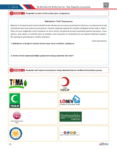 1. Ünite Bir Elin Nesi Var İki Elin Sesi Var - Hak, Özgürlük, Sorumluluk