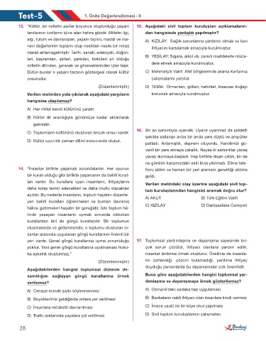 13. “Kültür, bir milletin asırlar boyunca oluşturduğu yaşam 15. Aşağıdaki sivil toplum kuruluşları açıklamaların-