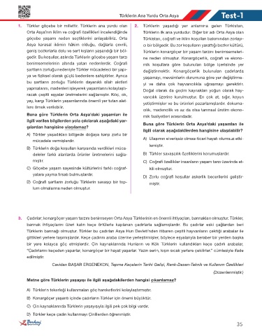 deleler farklı alanlarda ürünler üretmelerini sağla- B) Türkler savaşçılık özelliklerini korumuşlardır.