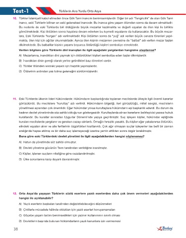 Test-1 Türklerin Ana Yurdu Orta Asya