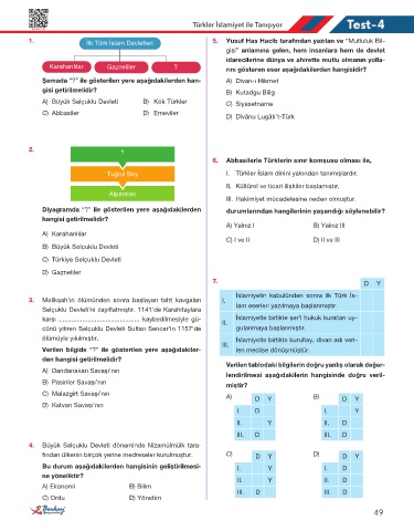 fından ülkenin birçok yerine medreseler kurulmuştur. C) D Y D) D Y