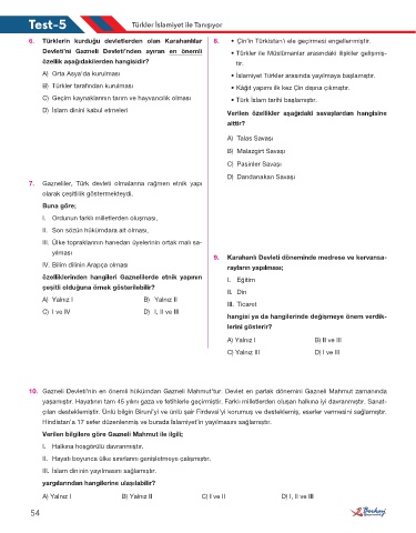 Test-5 Türkler İslamiyet ile Tanışıyor