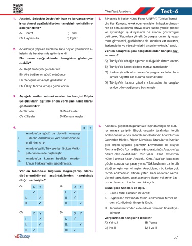 A) D Y B) D Y Buna göre Anadolu ile ilgili,