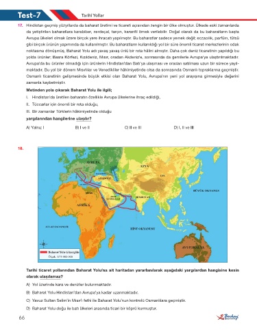 Tarihî ticaret yollarından Baharat Yolu’na ait haritadan yararlanılarak aşağıdaki yargılardan hangisine kesin