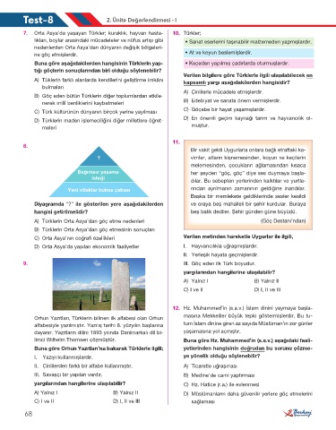 7. Orta Asya’da yaşayan Türkler; kuraklık, hayvan hasta- 10. Türkler;
