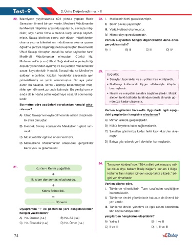Test-9 2. Ünite Değerlendirmesi - II