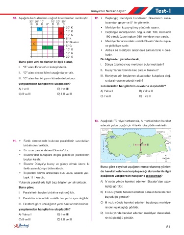 10. Aşağıda bazı alanların coğrafi koordinatları verilmiştir. 12. • Başlangıç meridyeni Londra’nın Greenwich kasa-