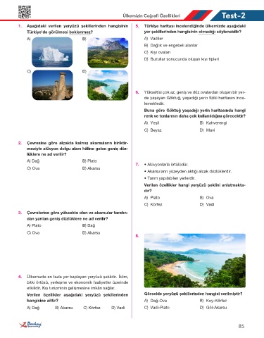 1. Aşağıdaki verilen yeryüzü şekillerinden hangisinin 5. Türkiye haritası incelendiğinde ülkemizde aşağıdaki