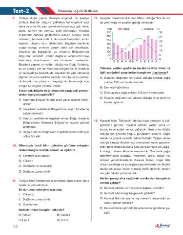 rağmen yeryüzü şekilleri sadedir. Tüm bu yapı içerisin- A) Sıcaklık, değerinin en düşük olduğu aylarda yağış