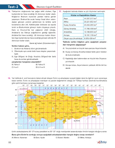 16. Türkiye’nin doğusunda kar yağışı etkili olurken, Ege 17. Aşağıdaki tabloda kıtalar ve yüz ölçümleri verilmiştir.