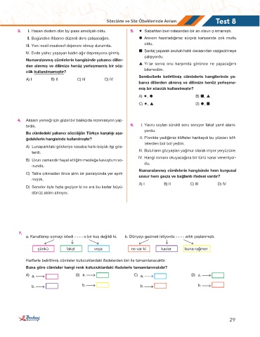 Harflerle belirtilmiş cümleler kutucuklardaki ifadelerden biri ile tamamlanacaktır.