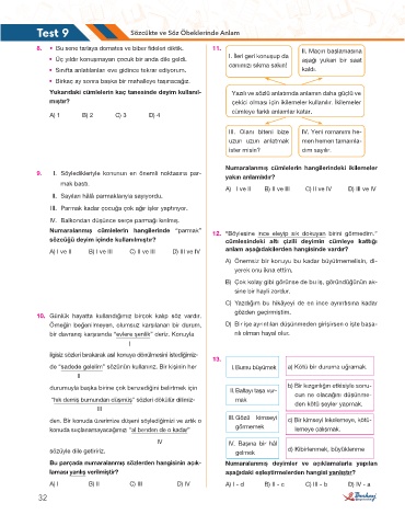 Test 9 Sözcükte ve Söz Öbeklerinde Anlam