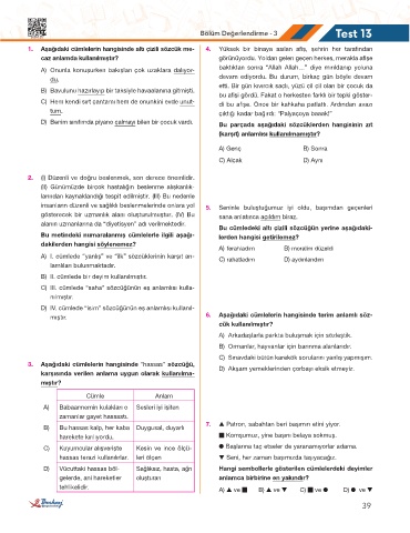 mıştır. 6. Aşağıdaki cümlelerin hangisinde terim anlamlı söz-
