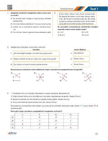 1. Aşağıdaki cümlelerin hangisinde neden-sonuç anla- 2. (I) Don Kişot, ülkesini terk etmek zorunda kaldı.