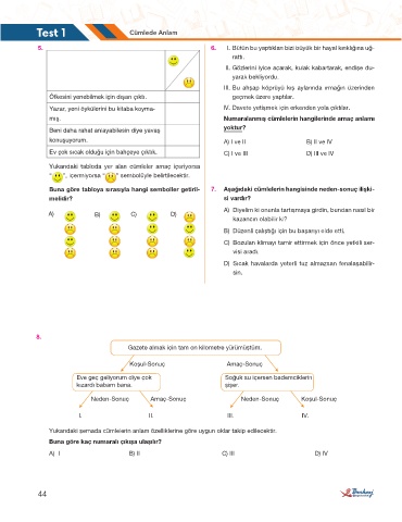 Test 1 Cümlede Anlam