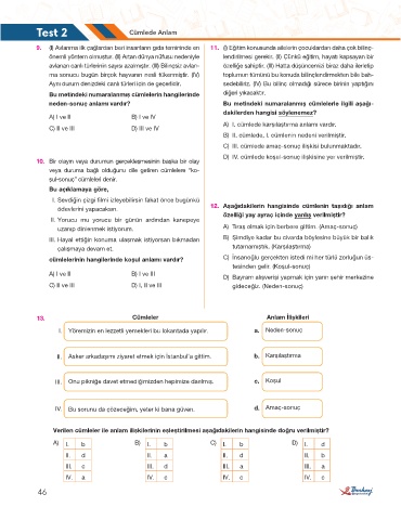 Test 2 Cümlede Anlam