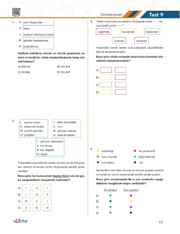 Buna göre her kutucuktaki baştan ikinci sözcük gru- ve kurallı bir cümle oluşturacak şekilde sıralanacaktır.