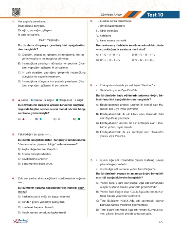 Bu sözcüklerle kurallı ve anlamlı bir cümle oluşturul- A) Edebiyatımızda antoloji türünün ilk örneği olan Ha-