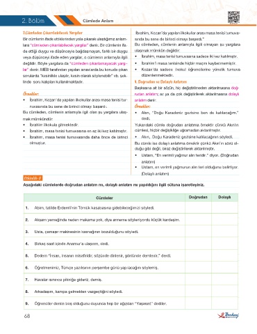 Aşağıdaki cümlelerde doğrudan anlatım mı, dolaylı anlatım mı yapıldığını ilgili sütuna işaretleyiniz.