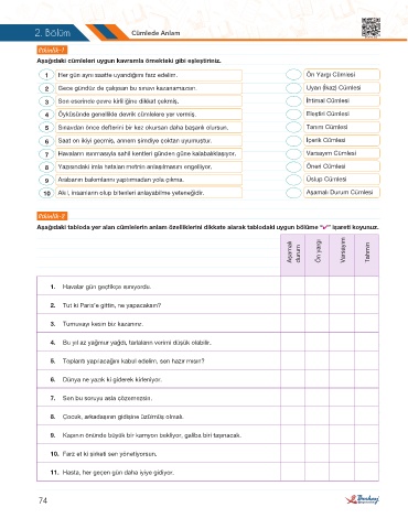 Aşağıdaki tabloda yer alan cümlelerin anlam özelliklerini dikkate alarak tablodaki uygun bölüme “∏” işareti koyunuz.