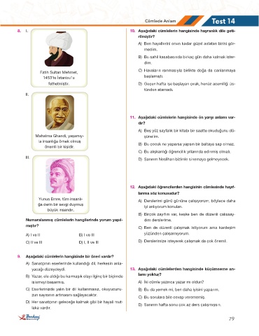 8. I. 10. Aşağıdaki cümlelerin hangisinde hayranlık dile geti-